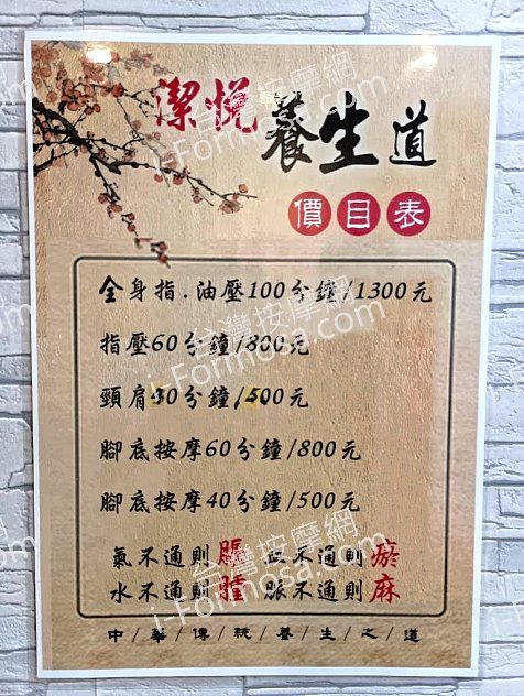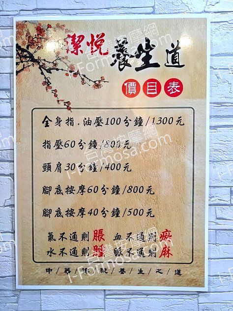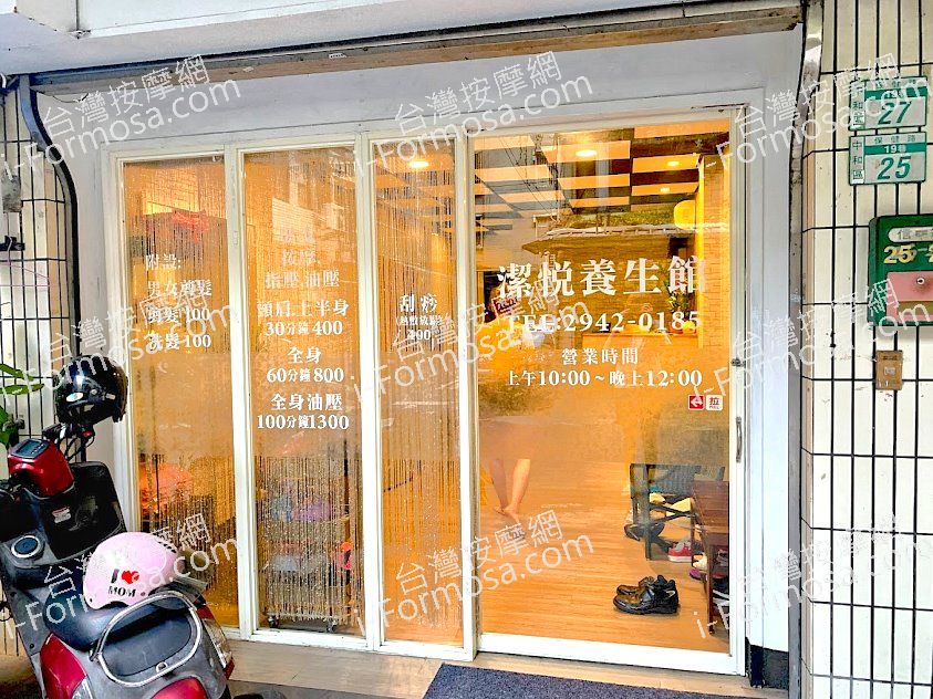 商家介紹潔悅養生館 位於新北市中和區保健路19巷,就在宜安路和保健路這兩個路口之間的巷子內。附近地點有八二三紀念公園。從捷運永安市場站步行9分鐘就可以到達本館,從捷運景安站步行過來則要12分鐘。 這裡提供的服務有 全身按摩、半身按摩、肩頸按摩、背部按摩、指壓、油壓、泰式按摩、越式按摩、台式按摩、中式按摩、經絡按摩、中式推拿、刮痧、精油按摩、足湯、芳療SPA、美髮、洗頭。 精選照片 商家資訊 中和區 所在位置: 台灣 > 北台灣 > 新北市 > 中和區 商家類型: 洗頭按摩 及 養生會館 商家地址: 23573台灣新北市中和區保健路19巷25號 預約方式: 預約或現場都可 聯絡電話1: 0909291895 : 上午 9:00 - 下午 5:00週一上午 11:00 - 下午 10:00週二上午 9:00 - 下午 5:00週三上午 11:00 - 下午 10:00週四上午 11:00 - 下午 11:00週五上午 11:00 - 下午 10:00週六上午 10:00 - 下午 10:00週日上午 11:00 - 下午 10:00 服務項目: 全身按摩半身按摩肩頸按摩背部按摩指壓油壓泰式按摩越式按摩台式按摩中式按摩經絡按摩中式推拿刮痧精油按摩足湯芳療SPA美髮洗頭 服務設施: 獨立包廂包廂內淋浴室 付款方式: 現金 停車位: 路邊停車付費停車場 店家其他照片(1) 店家其他照片(2) 地圖位置 地圖導航 No Records FoundSorry, no records were found. Please adjust your search criteria and try again. Google Map Not LoadedSorry, unable to load Google Maps API. Google評論 4.6powered by Google呂彥霖12:49 12 Sep 25李珞言10:53 27 Jun 25老板娘很親切,手藝很好,價錢便宜~絕對值得五星推👍🏻👍🏻陳國欽13:04 10 Feb 25非常推薦,環境乾淨、老闆娘手法很棒,原本頭痛按完整個頭都好了。VICKY Hsu07:53 02 Nov 24按摩技術超好的,每個穴道、筋膜都很到位。有效紓解我一週的酸痛,還有重訓後的肌肉修復。按壓一個小時就足夠了!超級舒服的~~~價格也合理!許瑞娟10:38 22 Sep 24闆娘手技好,按摩完全身舒暢想讓身體放鬆,可以來體驗喔ZI XIN YU03:25 27 Apr 24按摩師技術超好👍🏻臨時約也可以安排出時間~還有養生茶可以喝😋非常推薦給想按摩放鬆的人來☺️olive05:31 21 Feb 24不知道第幾次來按了。每當腰痠背痛,解不開的結,都會想到許小姐。😀👍🏼這次來還有打卡送薄荷精油,小小伴手禮。很實用!!推薦~ 標籤: 中和八二三紀念公園、中和區保健路、中和區宜安路、中和按摩、中式按摩、中式推拿、全身按摩、刮痧、半身按摩、台式按摩、指壓、捷運景安站、捷運永安市場站、新北市按摩、油壓、泰式按摩、洗頭、精油按摩、經絡按摩、美髮、肩頸按摩、背部按摩、芳療SPA、越式按摩、及 足湯