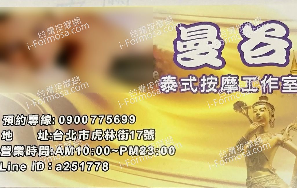 曼谷泰式按摩工作室 位於台北市信義區虎林街,就在市民大道六段和松隆路這兩個路口之間的路段上。附近地點有永吉國中、饒河街夜市、五分埔商圈。從捷運松山站出來再步行3分鐘就可以到達本館,從台鐵松山火車站出來則步行4分鐘就可以到達本館。
